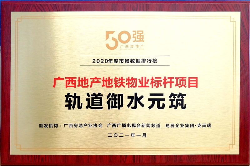 • 軌道御水元筑獲得廣西地產(chǎn)地鐵物業(yè)標(biāo)桿項目稱號