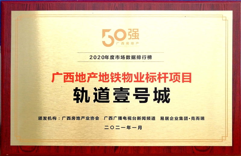 • 軌道壹號城獲得廣西地產(chǎn)地鐵物業(yè)標(biāo)桿項目稱號