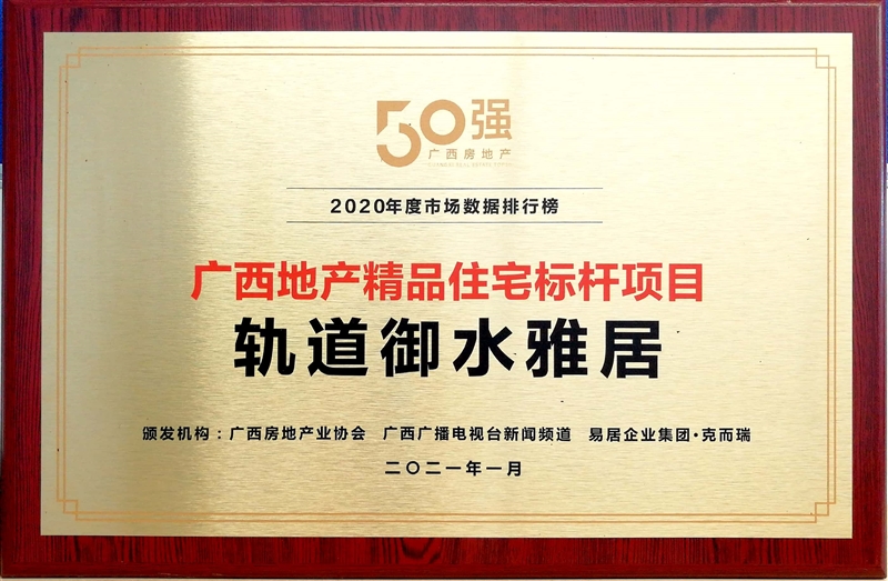 • 軌道御水雅居獲得廣西地產(chǎn)精品住宅標(biāo)桿項目稱號
