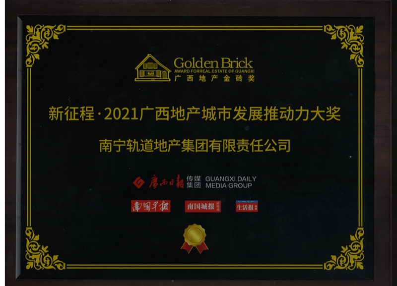 • 公司獲得廣西地產(chǎn)金磚獎“新征程·2021廣西地產(chǎn)城市發(fā)展推動力大獎”