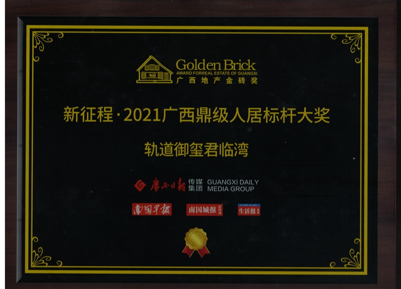 • 軌道御璽君臨灣項目獲得廣西地產(chǎn)金磚獎“新征程·2021廣西鼎級人居標(biāo)桿大獎”