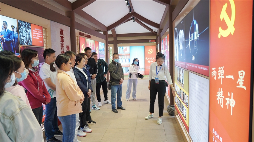第一站,黨員干部們跟隨講解員依次參觀了中國共產(chǎn)黨人精神譜系主題園的“兩廳一廊一館”,講解員通過互動(dòng)點(diǎn)播屏、全息投影系統(tǒng)、虛擬翻書系統(tǒng)等聲光高科技設(shè)備,引導(dǎo)黨員干部們對新民主主義革命時(shí)期、社會主義革命建設(shè)時(shí)期、改革開放和社會主義現(xiàn)代化建新時(shí)期以及中國特色社會主義新時(shí)代所形成的系列偉大精神進(jìn)行了沉浸式學(xué)習(xí)。在講解員的介紹下,大家沿著百年黨史的時(shí)光長河溯流而上,仿佛回到歷史情境中,細(xì)細(xì)品讀著先輩們從千磨萬擊中錘煉而來的偉大精神,這些偉大的精神不斷叩擊著大家的心靈,讓人心潮澎湃、感慨萬千,從中汲取了不斷前進(jìn)的力量。
