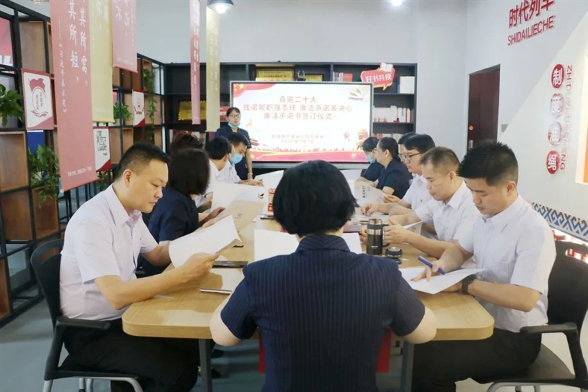 為增加員工廉潔從業(yè)自律意識,使員工從思想上守好廉潔從業(yè)“底線”,支部充分結(jié)合崗位層級具體情況,制定不同的廉潔承諾書內(nèi)容,2022年7月組織公司全員至上而下簽訂《廉潔承諾書》,切實(shí)把廉潔從業(yè)的理念和要求根植于員工心中,筑牢干部職工廉潔“防火墻”。