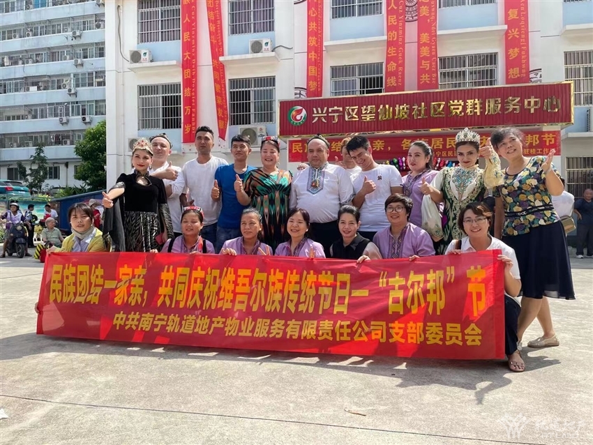 為弘揚民族文化,促進民族團結,鑄牢中華民族共同體意識,結合中國共產黨成立一百周年的契機,望仙坡社區(qū)、新疆駐桂工作組、興寧區(qū)民宗局于2021年7月15日上午在望仙坡社區(qū)廣場開展古爾邦節(jié)民族文化宣傳活動,軌道地產物業(yè)公司黨支部作為黨建聯(lián)盟單位,受邀參加此次活動,與各族群眾一起共同慶祝維吾爾族傳統(tǒng)節(jié)日--“古爾邦”節(jié)。