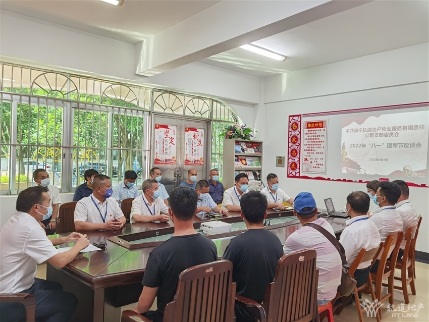 轉(zhuǎn)眼又到“八一”建軍節(jié)。曾經(jīng)的硝煙里,先烈們匯聚成浩蕩鐵流,才迎來(lái)白鴿飛翔。在這個(gè)特別的日子里,軌道地產(chǎn)物業(yè)公司在南湖公務(wù)員小區(qū)會(huì)議室召開(kāi)退伍軍人座談會(huì),軌道地產(chǎn)物業(yè)公司黨支部書(shū)記、董事長(zhǎng)李院海和公司各項(xiàng)目退伍軍人歡聚一堂,共慶建軍節(jié)。