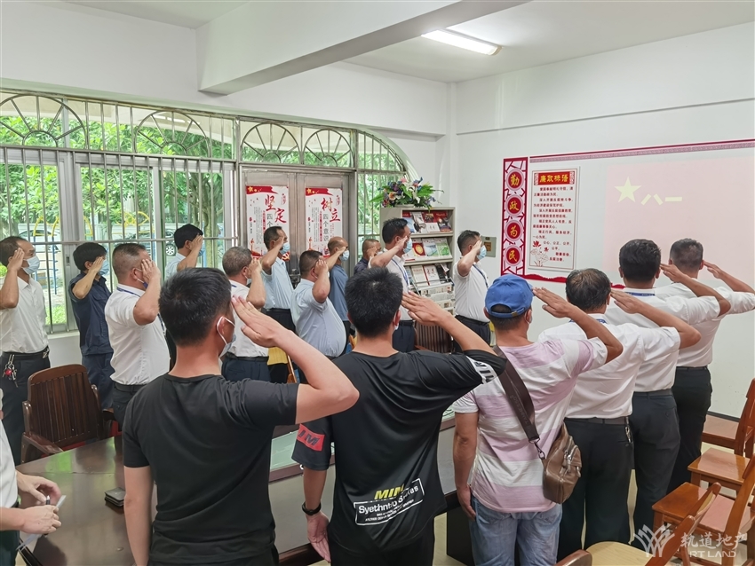 在接下來(lái)《我依然是一個(gè)兵》的主題座談會(huì)上,軌道地產(chǎn)物業(yè)公司的退伍軍人們紛紛暢談自己軍旅生涯,回憶歷史、述說(shuō)現(xiàn)在、展望未來(lái)。就職于軌道地產(chǎn)物業(yè)公司的老兵們盡管身份變了,崗位變了,服裝變了,但是那顆堅(jiān)韌不屈、拼搏奮進(jìn)、永葆忠誠(chéng)的心始終不變,那種堅(jiān)毅的氣魄無(wú)時(shí)無(wú)刻不在彰顯。面對(duì)不良,他們大聲呵斥;面對(duì)業(yè)主,他們眼含微笑。一雙巧手,修器械,補(bǔ)缺漏;一對(duì)明目,迎晨曦,送晚霞;一身剛軀,守家門(mén),鎮(zhèn)宵小。穿上戎裝,他們保衛(wèi)國(guó)家。褪下軍服,他們守護(hù)園區(qū)。在第95個(gè)建軍節(jié)來(lái)臨之時(shí),這些老兵們面對(duì)軍旗再次敬個(gè)禮,再次合唱了《人民解放軍軍歌》。