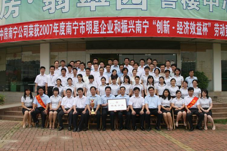 中房南寧公司榮獲2007年度南寧市明星企業(yè)和振興南寧“創(chuàng)新、經(jīng)濟(jì)效益杯”勞動競賽金杯獎